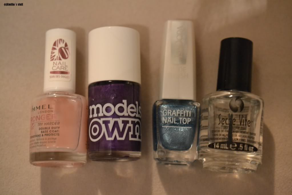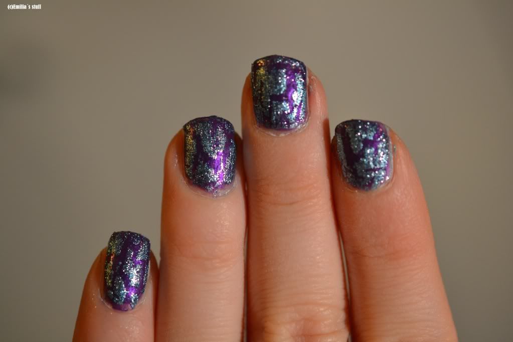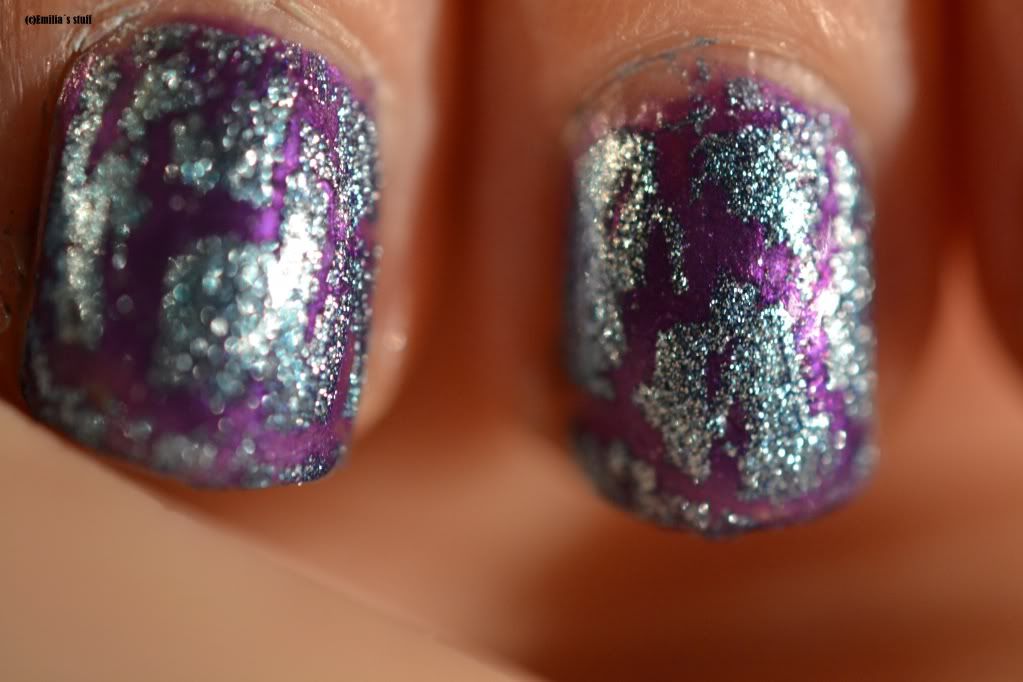 Päätin käyttää sinistä Isadoran graffitilakkaa ja alle laitoin sitten MO:n Purple Imperial. Tuli ihan jees yhdistelmä, ois kyllä voinu siistimmätkin tulla.